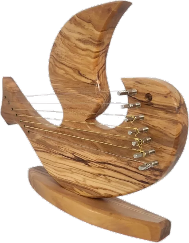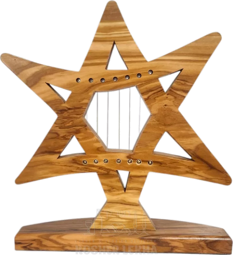 David's harp made of olive wood with a pattern, Star of David, handmade