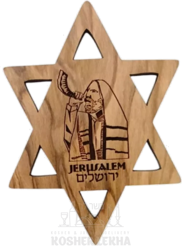 The star of David is made of olive wood, blowing a shofar