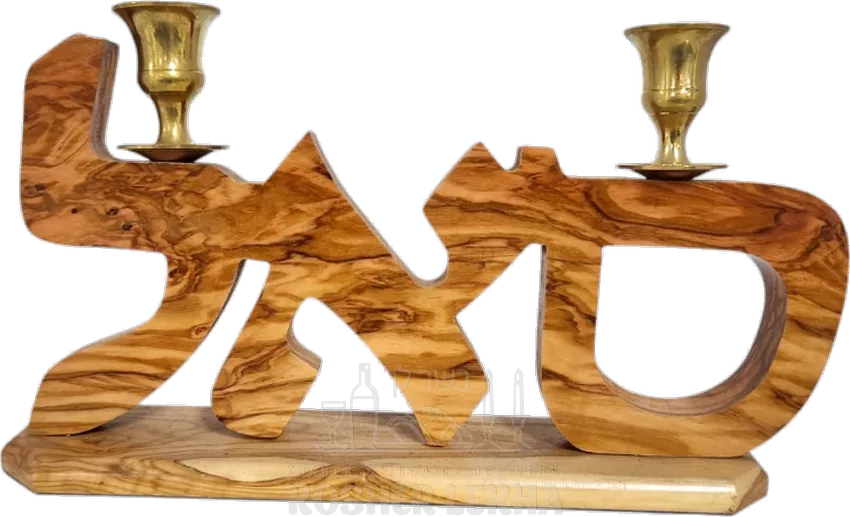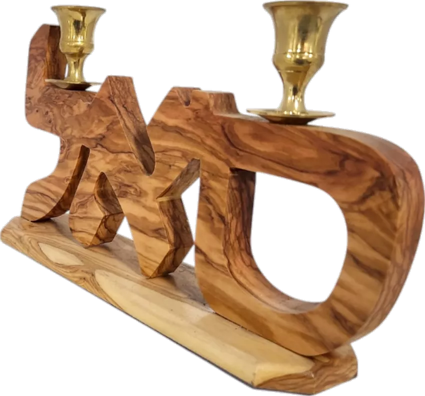 Candelesticks made of olive wood with a pattern of the hidden name of G-d in Hebrew #2