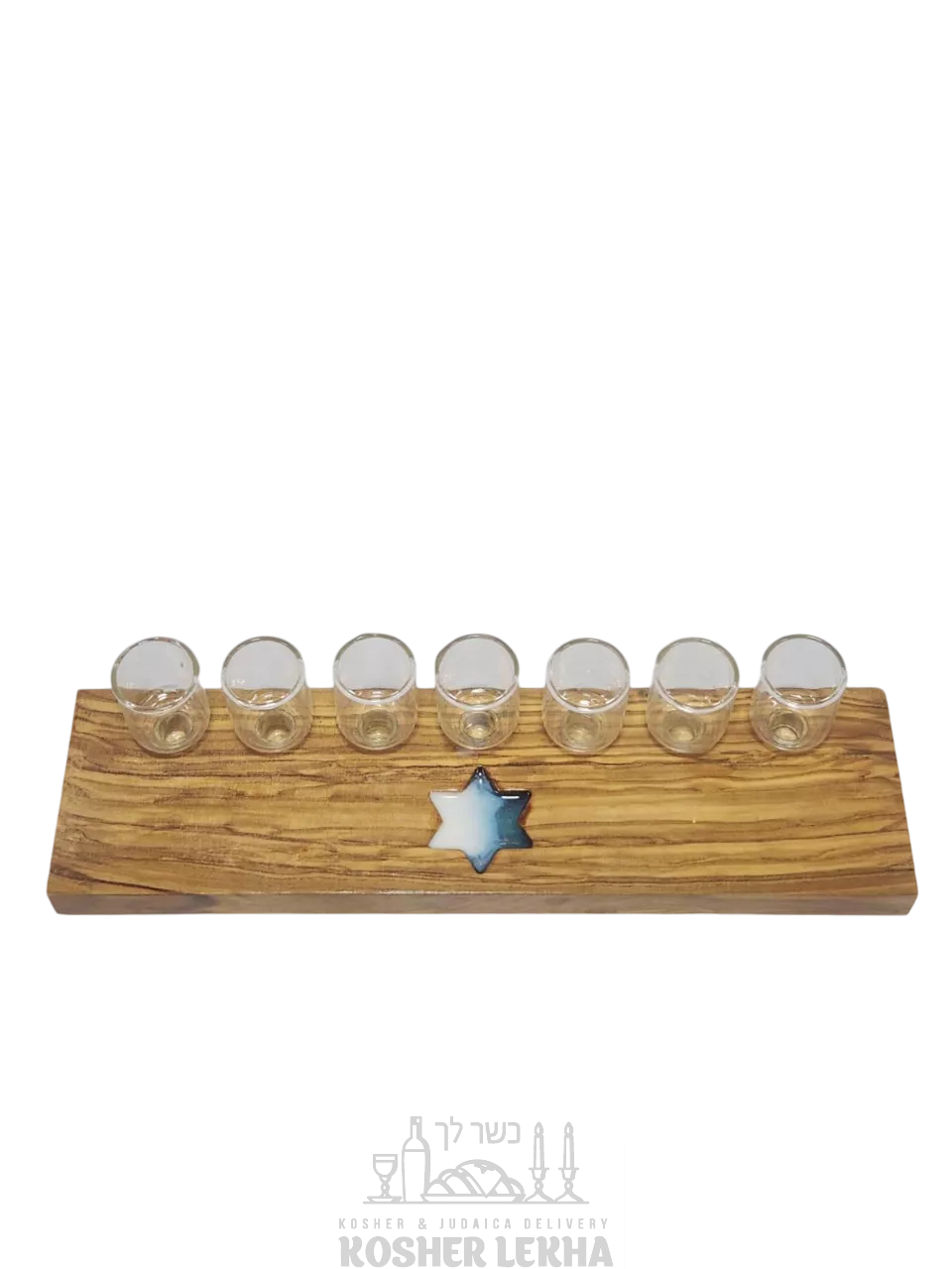 Wooden seven-candle holder with a star of David