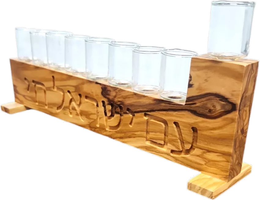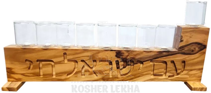 Olive wood Hanukkah and glass cups, with engraving Am Israel Chai, handmade