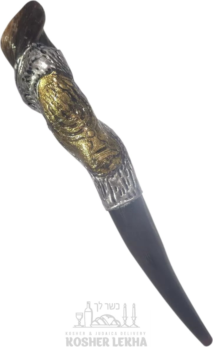 Eland shofar, silver and gold plated, menorah pattern, handmade