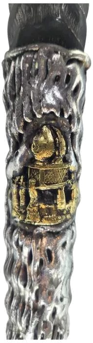 Shofar oryx, exotic, silver and gold plated, patterned after the Ark of the Covenant