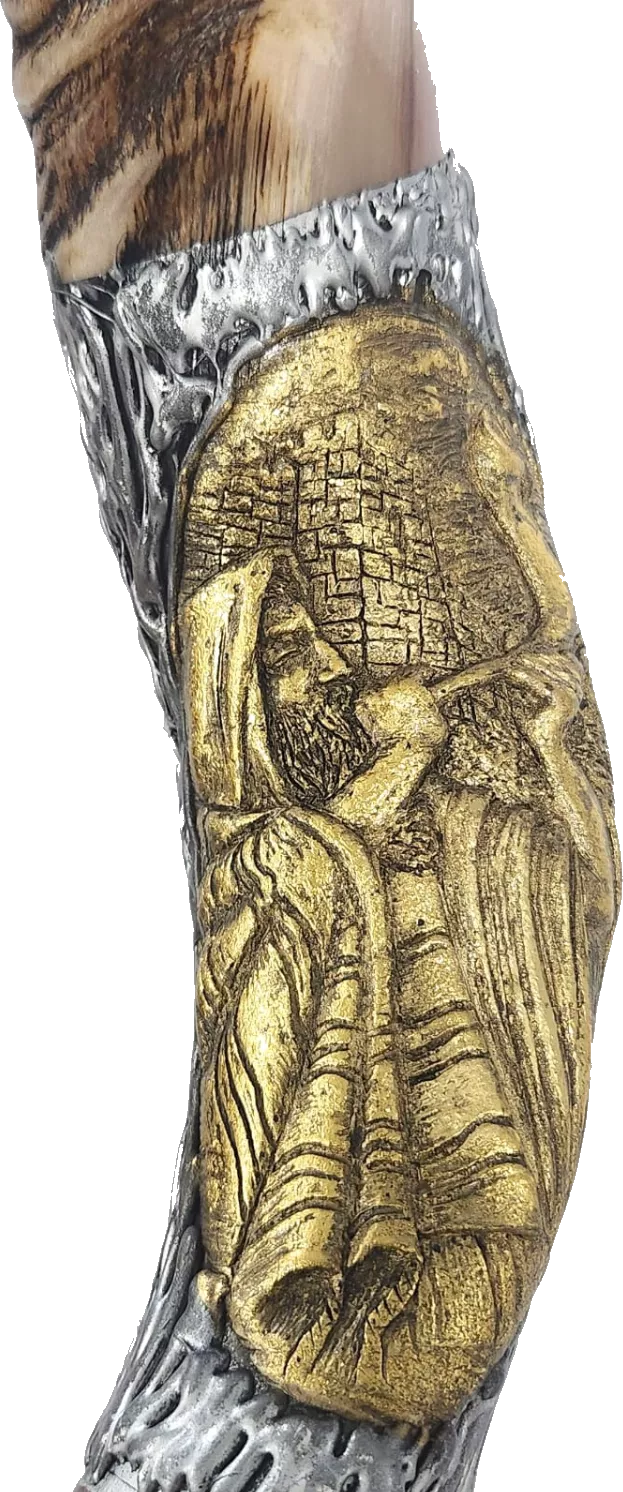 Silver-plated shofar, with the pattern of a priest blowing a shofar