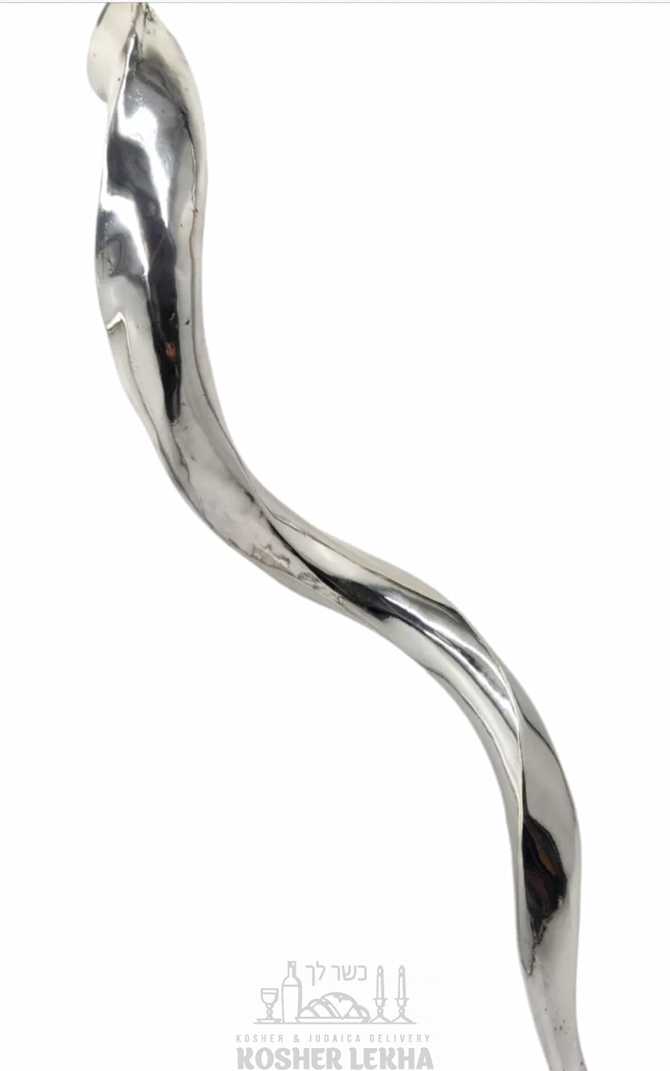 Shofar is fully silver plated with a smooth mirror effect