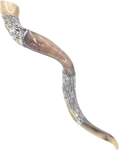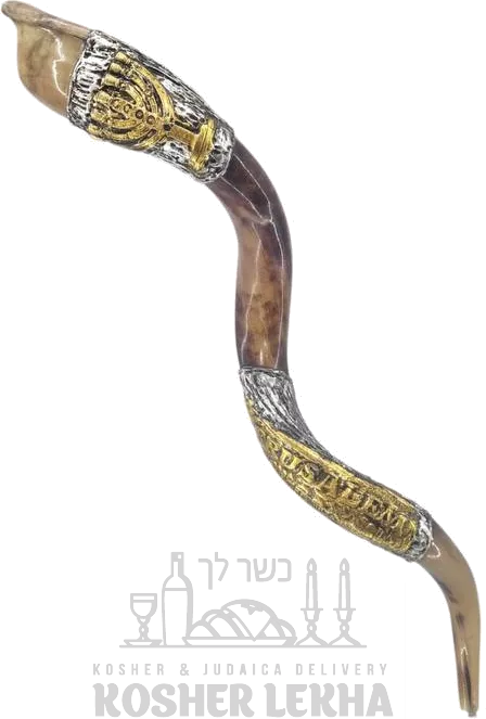 Silver and gold plated shofar, menorah pattern, handmade
