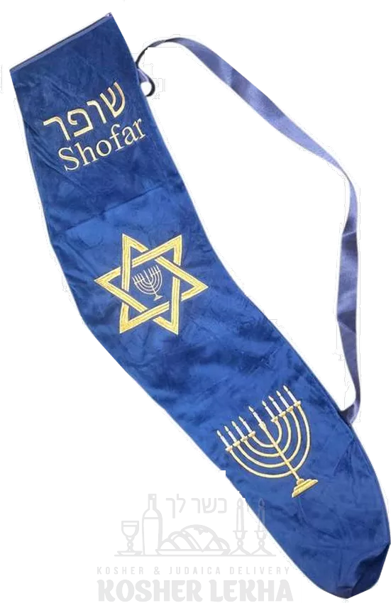Embroidered shofar bag with a menorah and Star David pattern and the word shofar in Hebrew #1