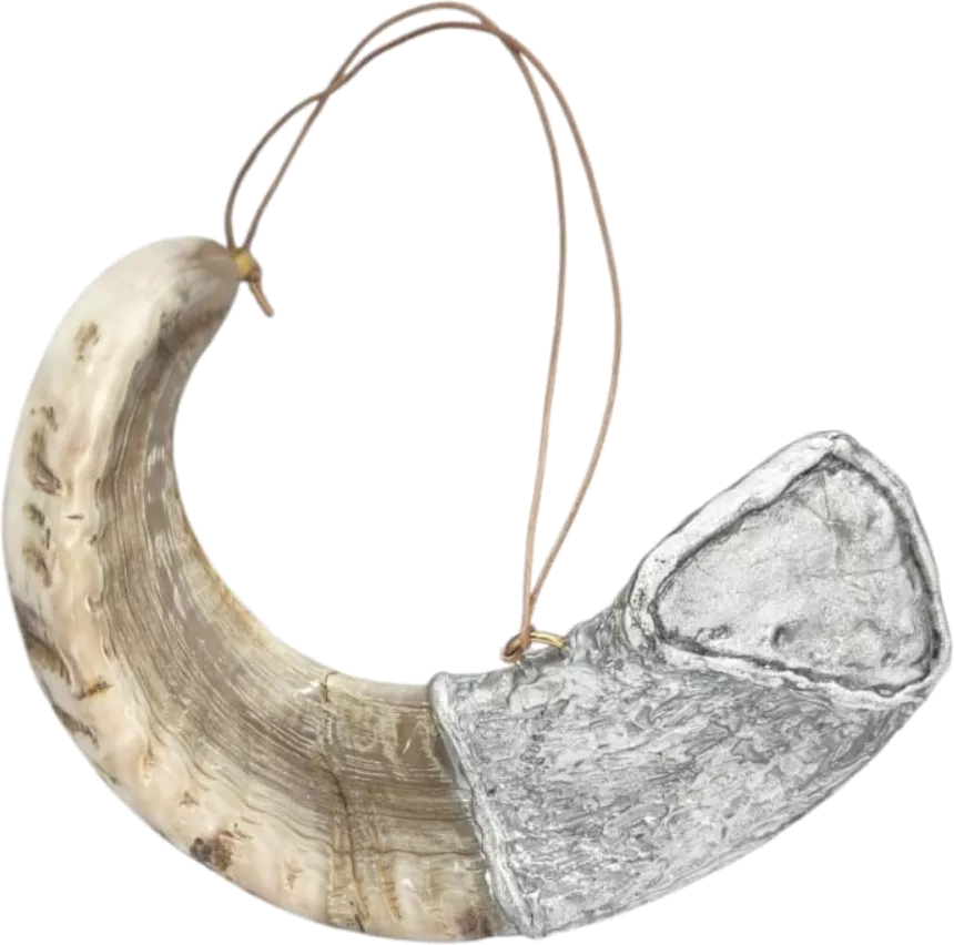 Shofar for anointing oil, plated in silver and gold, with a Star of David pattern