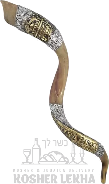 Shofar kudu, with silver and gold plated, pattern after the Ark of the Covenant, handmade