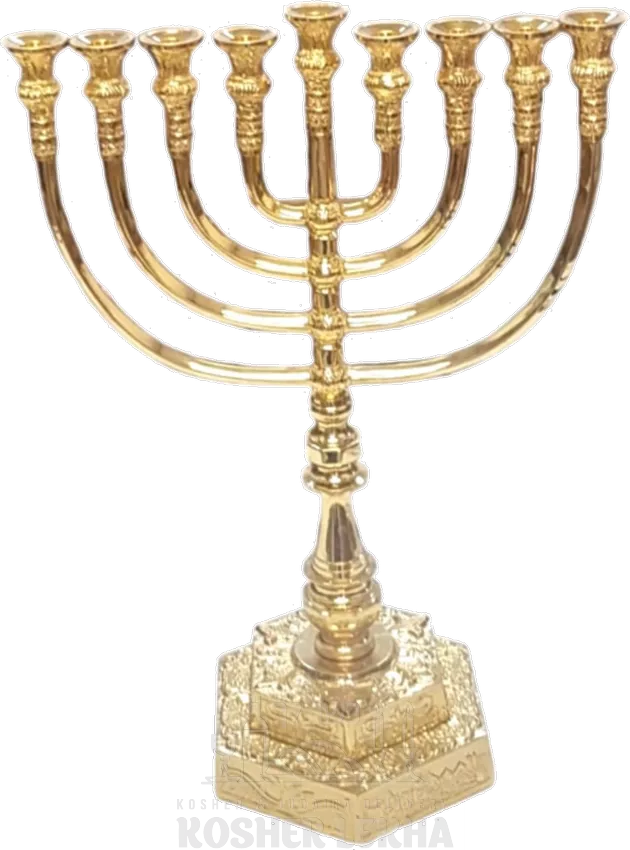 Gold-plated Temple Menorah, a replica of the original, 14inch
