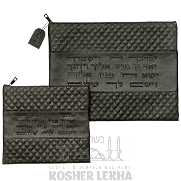 Set for talit and tefillin black leather