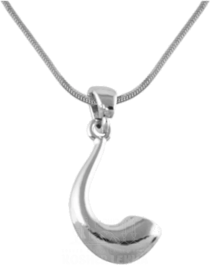 Necklace and pendant in the shape of a ram horn shofar, silver color